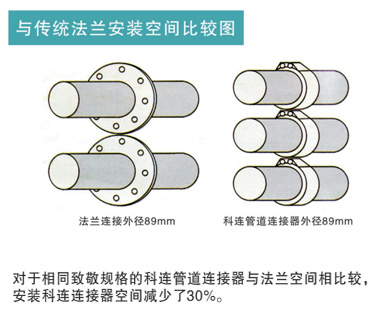 本公司設 計的管道連接器 、管道修補器具有 :代替法蘭 、快速連接 、免動火 、施工簡單 、效率高 、節(jié)省空間 、 降低成本 、 針對不同介質不同材質的管道連